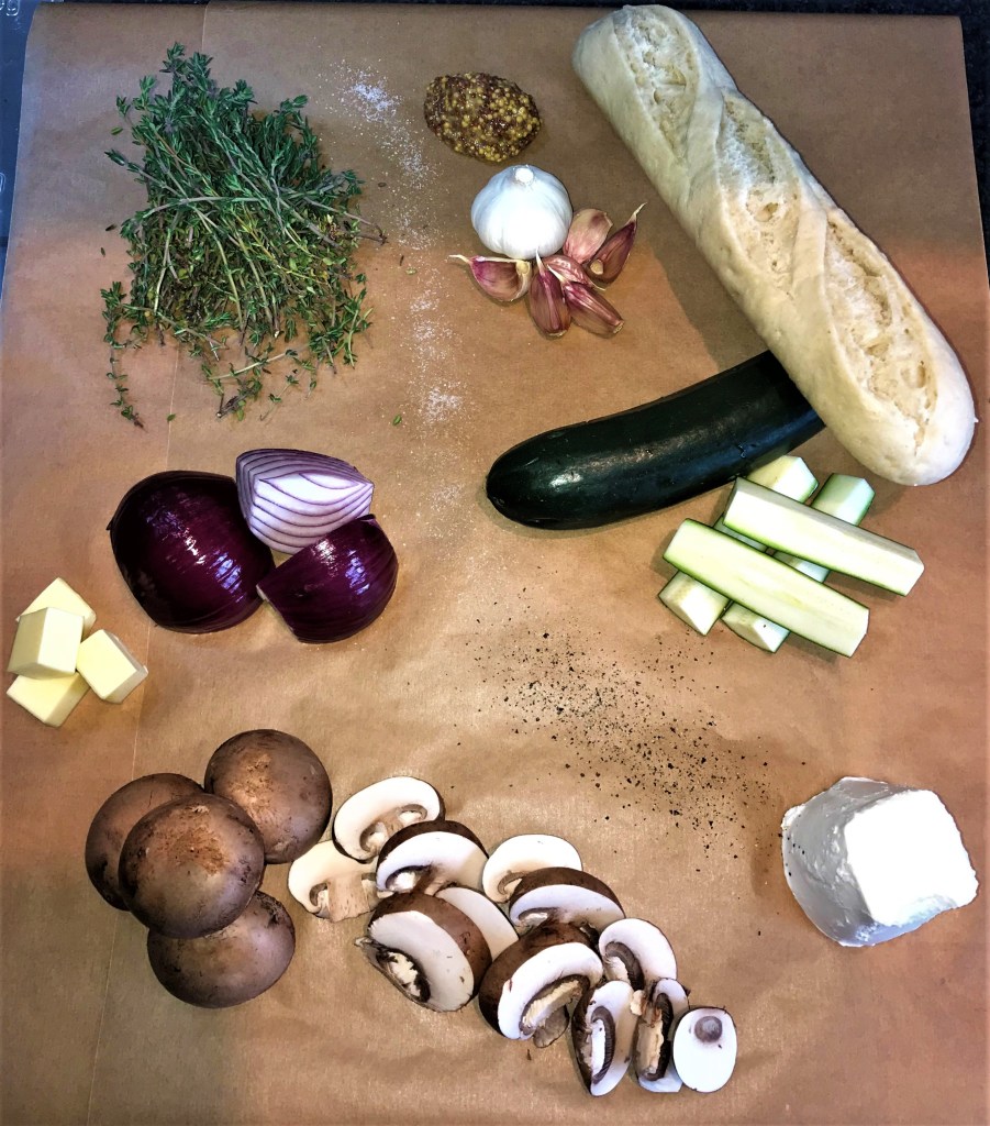 First, slice a tomato, dice two spring onions and chop a handful of parsley and set them aside. Next, turn on the grill and get it nice and hot. In a bowl, place two spoons of the truffle butter and whip until soft. Spread the butter on one side of the bread and toast under the grill until golden brown. Turn over the bread and toast on the other side – careful not to burn it. Remove from the grill and set aside to cool – then turn off the grill heat and heat the oven – 200 degrees and close the door to get the oven hot.